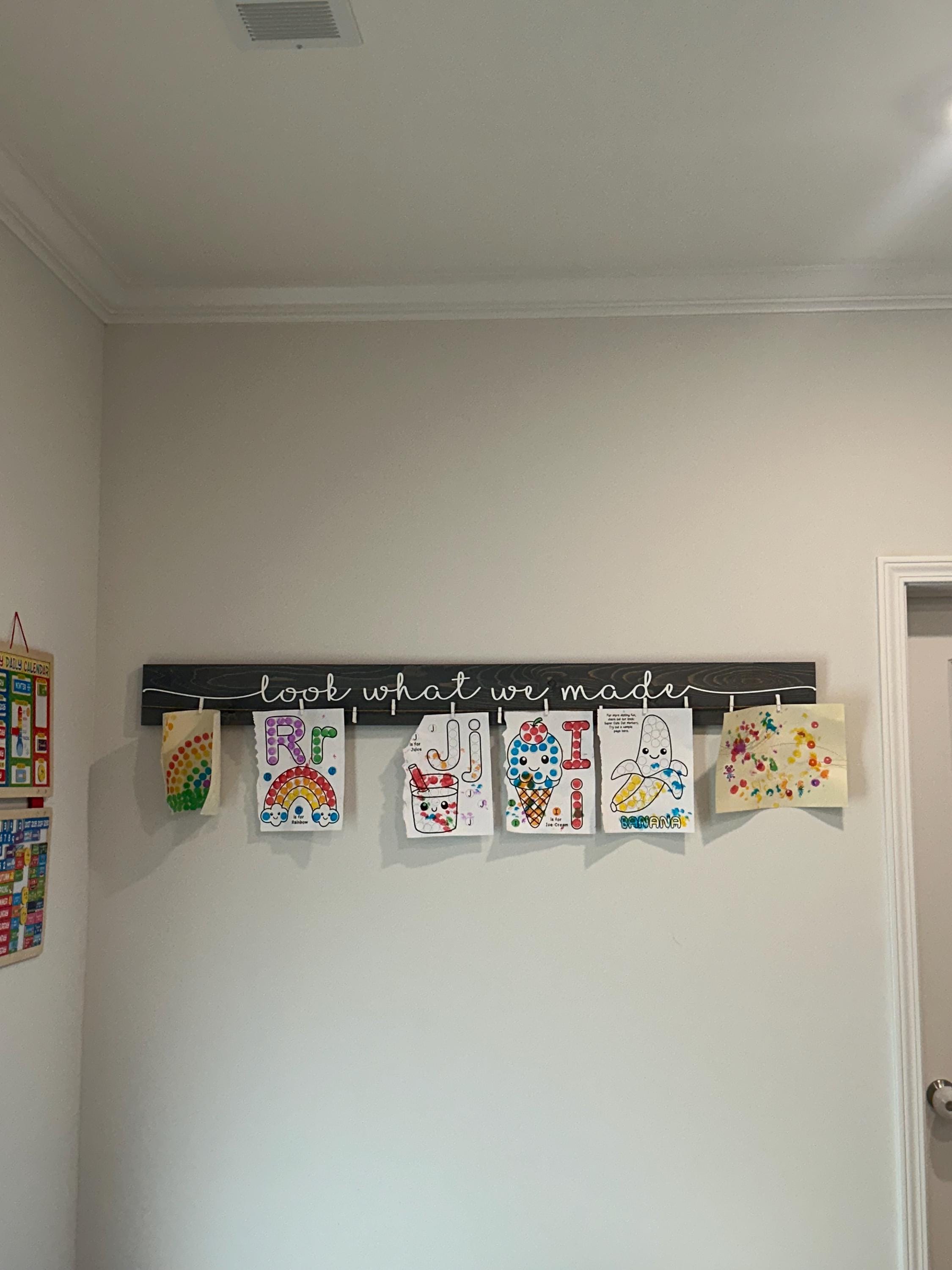 This artwork display sign is a wonderful addition to any playroom or kitchen to show off your little picasso's latest masterpieces!