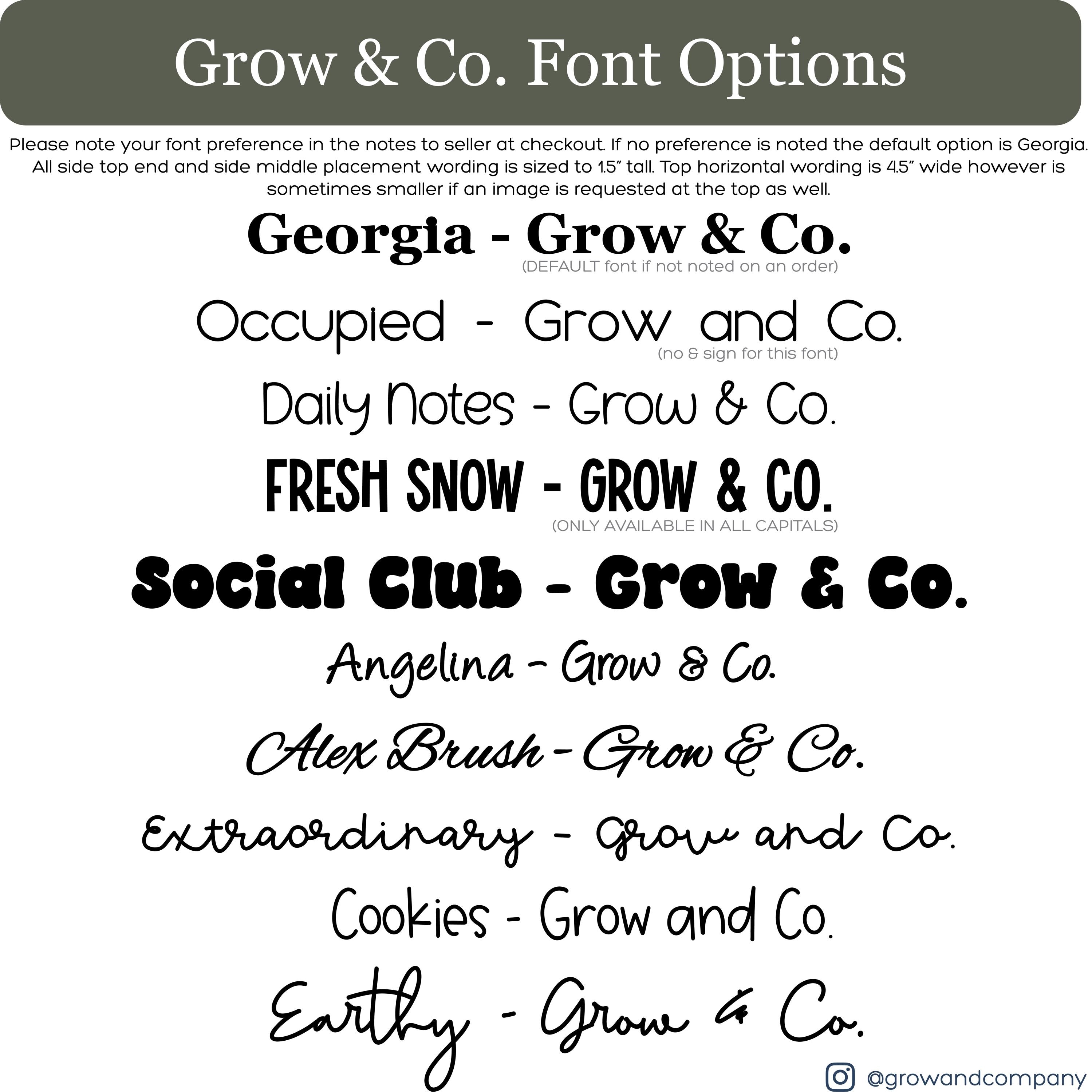 2. If name is being added, please note the name and font choice.